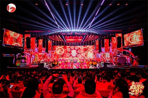 作为“超级村晚”的舞台,本场晚会邀请了省内外优秀艺术家和表演团队。四位中国戏曲梅花奖获得者孙娟、王琴、何云和吴美莲,携手带来黄梅戏经典唱段《到底人间欢乐多》,共同演绎丰收的和美景象,共迎人间欢乐多的新春。