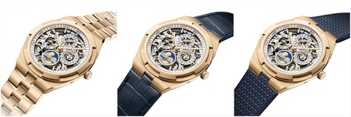 两款新表均使用相同的基本机芯,蓝盘款使用1120 QP / 1自动上链机芯,而镂空款因其设计的复杂性使用更为独特的1120 QPSQ / 1机芯,这两款自动上链机芯均具有40小时动力储存,由276个组件组成,并使用36颗珠宝。两款机芯最大的区别在于1120 QP/1使用的是纵横四海全金自动陀,而1120 QPSQ/1选择了经过NAC处理的、呈马耳他十字形的镂空摆锤,突显了江诗丹顿的特色。