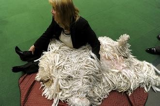 匈牙利牧羊犬来自匈牙利的普西塔地区,匈牙利牧羊犬毛的颜色只有白色一种,绳索状垂直状的毛发生长4年可长到地面长度,又称为“拖把狗”,它还是狗狗里面潜水最牛的犬。