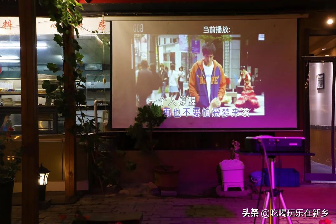 杀牛场院子的装修风格让人眼前一亮,几张桌子一字排开,正对着的是一个投影仪,据说还有食客兴致来了会一展歌喉,将饭场变成自己的小型演唱会,热闹极了
