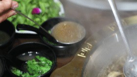 吃重庆火锅不配上干油碟像是少了点什么,不过不吃干油碟也有麻酱和两掺可以选择,杀牛场非常注重食客体验,麻酱是手工制作,蒜泥也在石舂中人工捣制,简单的细节,带给客人极佳的用餐体验