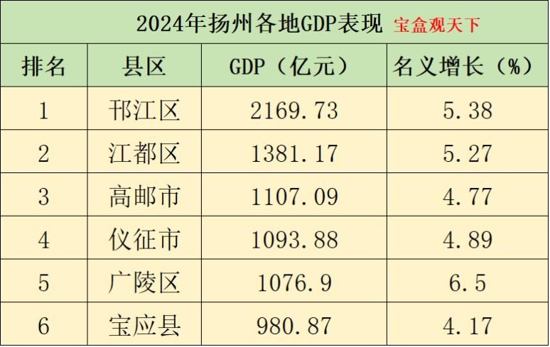 2024年扬州各地GDP表现,邗江提交理想,广陵区增速出色