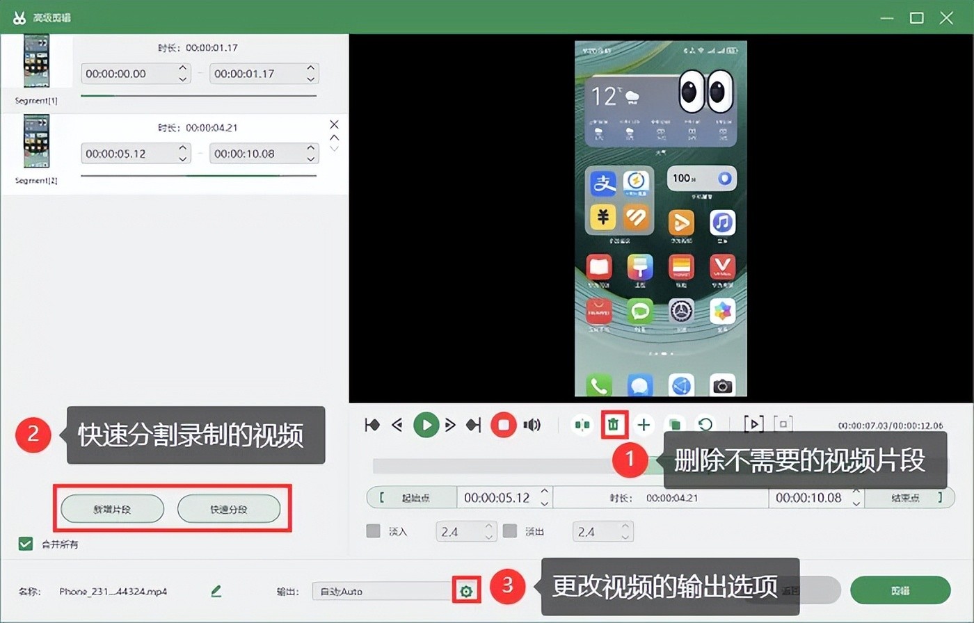 它可以根据自身需求,自由设置录屏参数,包括帧率、格式、录屏输出质量等。软件自带多媒体处理功能,可以对录制的视频进行转换、合并等操作。下面是录制华为手机的操作步骤: