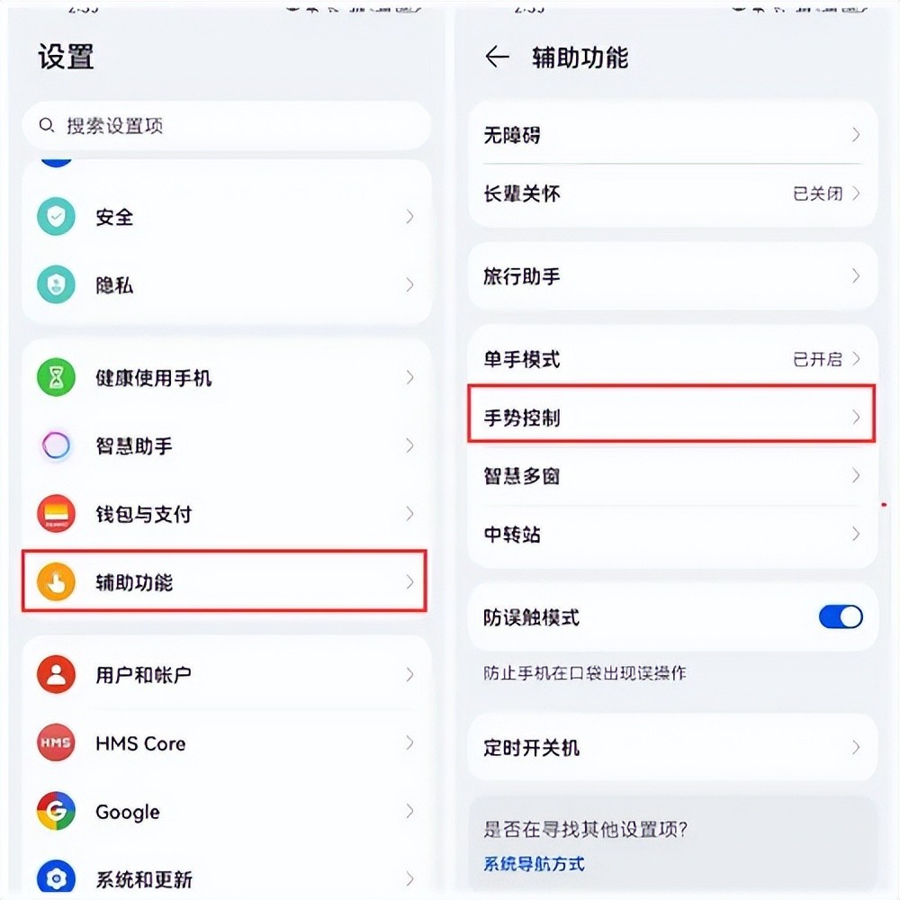 第1步:打开华为手机的设置,找到“辅助功能”选项,进入功能页面,然后点击“手势控制”选项。
