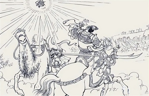 金霞冠金光耀目,火龙兵火烧敌将。