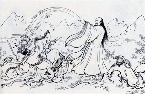 洪锦龙吉皆受伤,姜尚不敌逃跑忙。