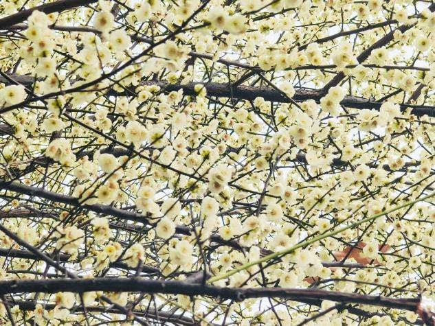 梅花,属于蔷薇科李属,是中国传统的十大名花之首。它们不畏严寒,通常在每年的1月至3月间盛开。天门植物园的梅花种类很多,红梅、白梅、绿梅,各种颜色都有,争奇斗艳,好不热闹。走在梅园里,那梅花香,简直要把人“淹没”。不少市民游客或在梅林漫步闲聊,或在花下品茶轻嗅梅香,又或与梅花同屏合影。