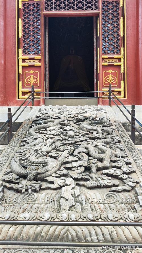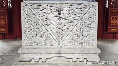 宗印殿后是真如境碑亭,紧凑小三间格局,碑文用玻璃罩住,四面方正的基座雕刻非常精美,正中龙头被游客摸得锃光瓦亮。