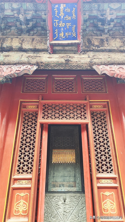 宗印殿前台阶正中有二龙戏珠浮雕,殿内供释迦尼佛、药师佛和阿弥陀佛,佛像大气庄重。三尊佛后均有护法神护佑,两侧有八大菩萨塑像。看守此殿的一中年男子,身穿素衣素服,手持念珠,主动搭讪询问,言及面带喜色,让座细谈。作为外地游客惶恐不敢就坐,答曰:俗世修行之人,心中有佛,积德行善即好。遂多谢告辞,各自安好。