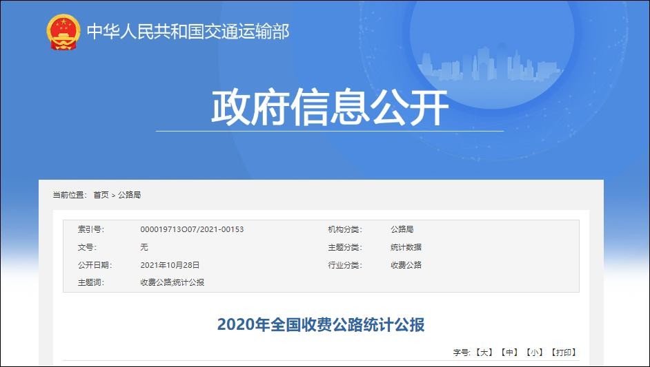 2020年全国收费公路统计公报