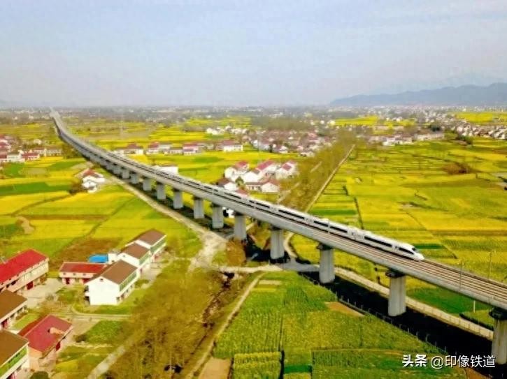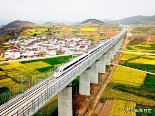 行进间的高速动车组列车