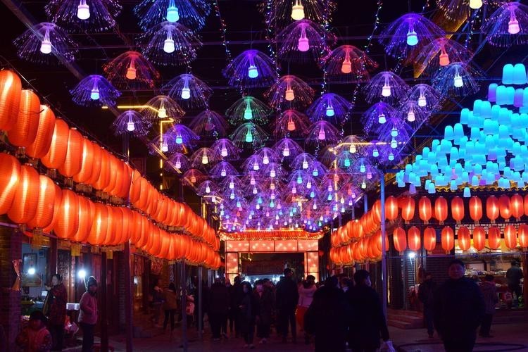 在春节期间,人们会挂起红灯笼,并在灯笼上写上谜语。猜灯谜是一种智力游戏,人们可以一起猜谜语,增加节日的乐趣。
