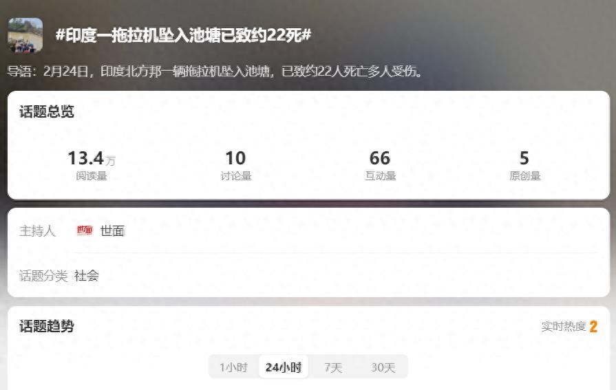 这是一条让人懵圈的热搜:印度一辆拖拉机坠入水塘,结果导致二十多人死亡,还有十几人受伤。