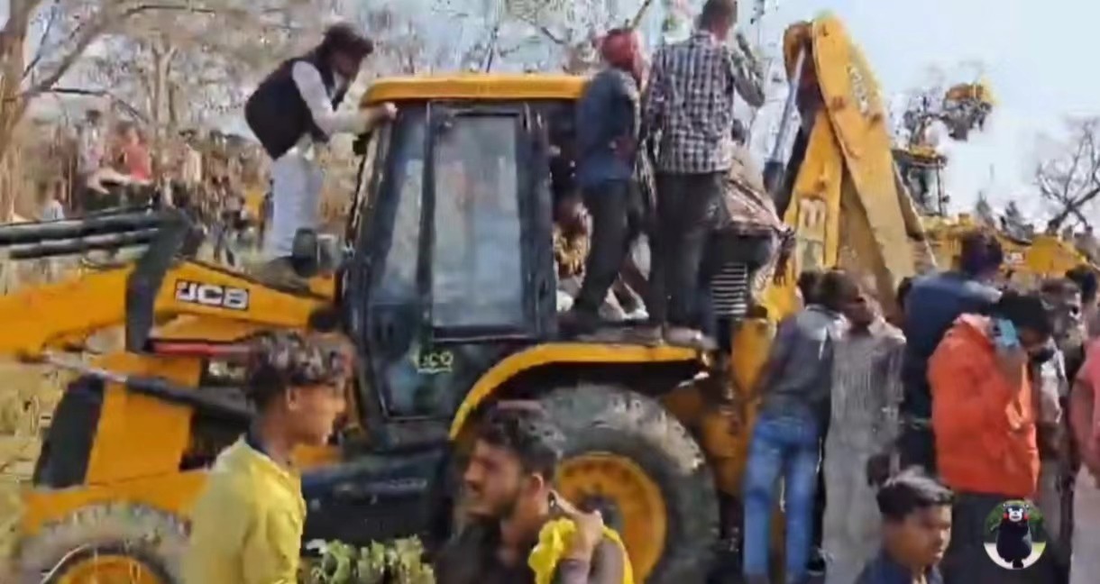 印度人则把负责救援的挖掘机都给挤满了:为了看热闹,全都站在挖掘机上面。