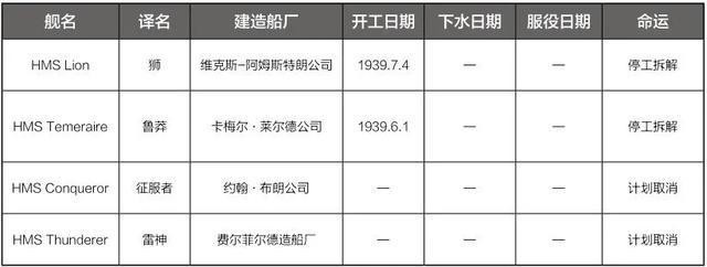 狮级的诞生有点生不逢时,当其正在建造时皇家海军已经开始转型,航空母舰在海军中的位置越来越重要。与此同时,在大西洋战役的残酷消耗中,英国需要补充大量的商船和护航舰艇,这一切都占用了本该用于建造狮级的人力、物力和财力。