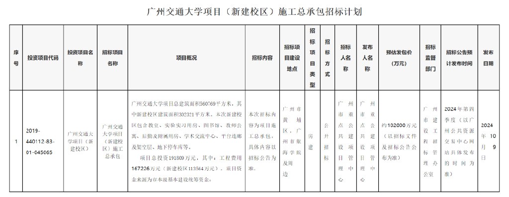 前不久,广州市重点公共建设项目管理中心也发布了广州交通大学项目(新建校区)施工总承包招标计划。这也意味着谋划多年的广东交通大学新校区即将正式开工: