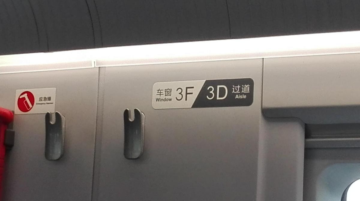 其次就是必须要搞清楚高铁座位上的一些指示标志和最基本信息。