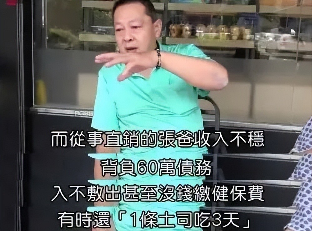 张爸说自己负债累累,3天吃一条吐司。