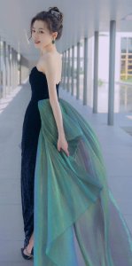 - 王秀竹 墨色抹胸长裙,纤瘦优雅(日记26)