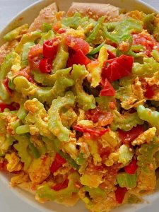 - 夏日必备——西红柿炒苦瓜 一、西红柿炒苦瓜的好处: 苦瓜炒西红柿有助消化的作用,西红柿含有丰富的营养,而且也含有维生素a等,它能够促进骨骼的生成,而且也能够防止佝偻病...