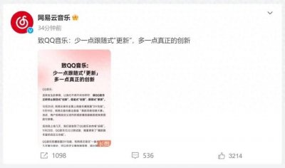 - 忍不住了,网易云音乐喊话QQ音乐:请停止抄袭