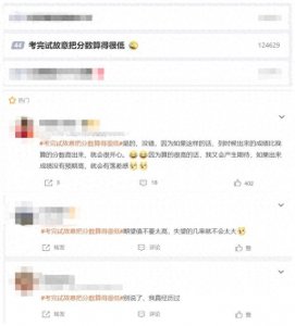 - 考完试故意把分数算得很低:为了降低家长对自己成绩的高期望 5月30日消息,微博话题“考完试故意把分数算得很低”上了热搜榜。 在社交平台上, 不少网友发微博表示,考完试后故...