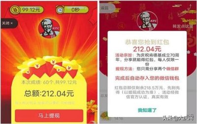 - 肯德基成立70周年送红包 分享即可到账?假的