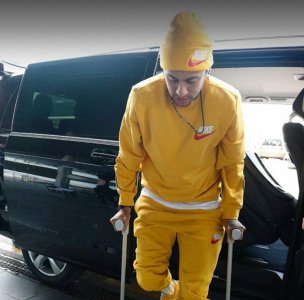 - 球星内马尔手持拐杖现身巴塞罗那机场,祝内马尔早日康复