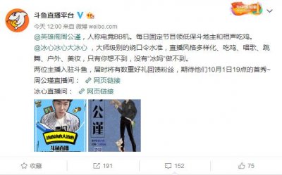 - 周公瑾、冰心入驻斗鱼,将十一首秀!水友喊话:期待更好的发展!