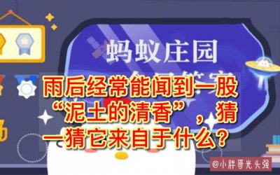 - 雨后经常能闻到一股“泥土的清香”,它来自于什么?蚂蚁庄园答案