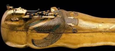 - 图坦卡蒙木乃伊真正的样子 图坦卡蒙法老的木乃伊由薄薄的布裹着,浑身布满了项圈、护身符、戒指、金银手镯以及各种宝石。木乃伊的头上,戴着一只金面套,它复现了这位年轻法老...