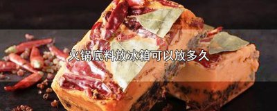 - 火锅底料放冰箱可以放多久 火锅底料放冰箱可以放一周的时间,冰箱冷藏区温度较低,能够抑制细菌的滋生,如果放置冰箱冷冻区存放最多可以保存15天时间,而且火锅底料应该一次性...